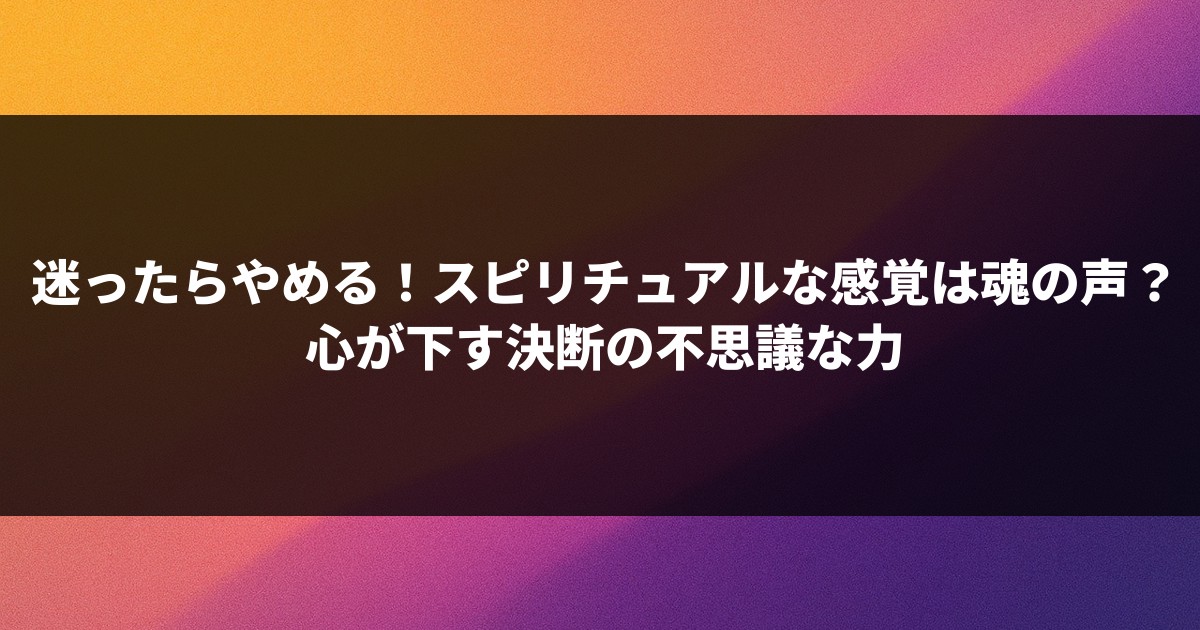 「迷ったらやめる」という考え方は、日常生活のさまざまな場面で耳にすることがあります。これは単なる経験則やジンクスとして語られることも多いですが、実は人の心理や脳の働きに基づいた深い洞察が隠されている可能性があります。本記事では、この「迷い」という感覚が何を意味するのか、そして決断を下す際にどのように役立つのかについて、スピリチュアルな視点と科学的な知見を交えながら解説します。