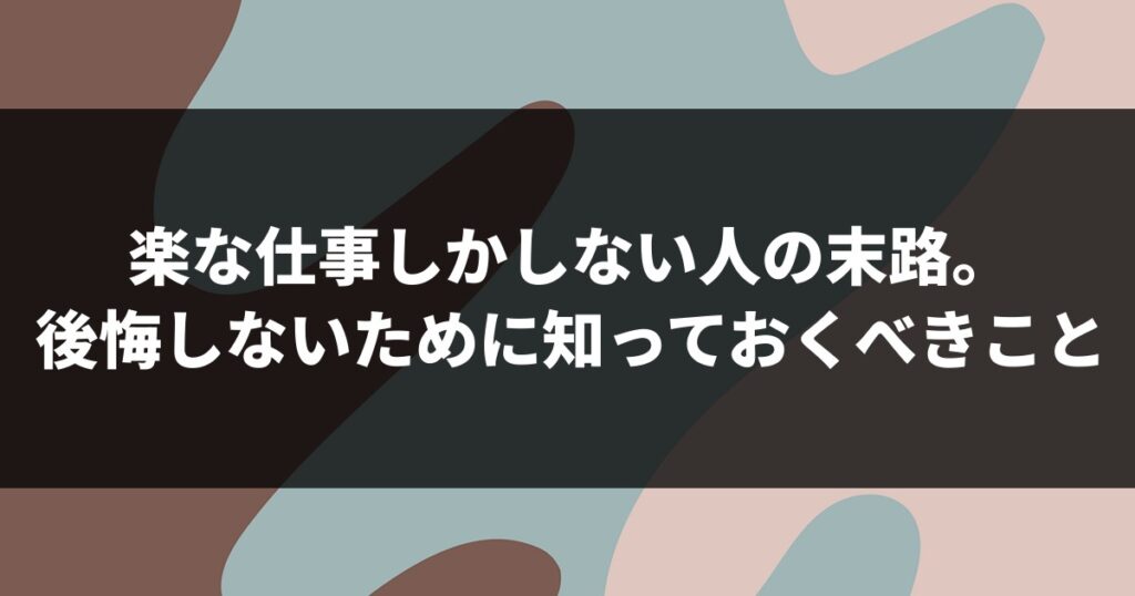 楽な仕事しかしない人の末路。後悔しないために知っておくべきこと