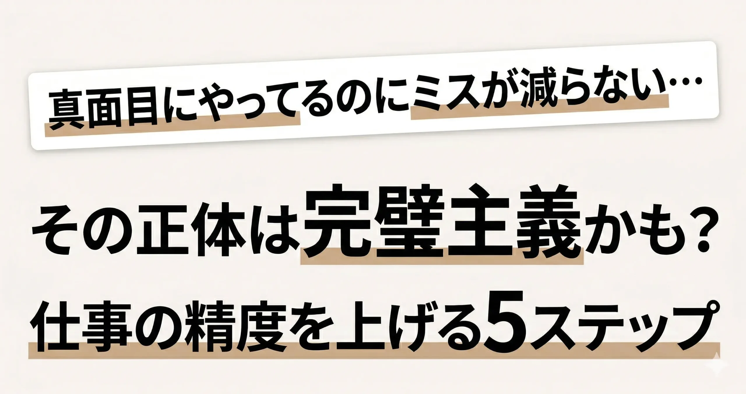 まずは今日から、ミスを「気合い」や「自分の性格」のせいにするのをやめ、『やり方(物理的な仕組み)』の問題へとすり替えてみてください。